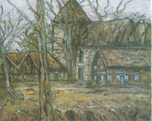 Auf diesem Bild ist das Elternhaus einer damaligen Freundin von Agathe zu sehen. Ihr Name war Mast-Mia. Die dargestellte Gasse führt zur Alten Kirche in Reken, die im Rücken des Betrachters liegt. Scan aus dem Buch "Agatha Schwering , Malerin aus Reken" (1978)